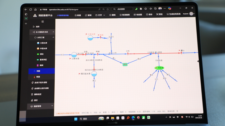 在河海大學(xué)水工程調(diào)度團(tuán)隊(duì)鐘平安教授的帶領(lǐng)下,朱非林參與了面向三峽工程這一國(guó)之重器的重大科研攻關(guān)。團(tuán)隊(duì)主要在"快"和"準(zhǔn)"兩個(gè)字上下功夫。過去,為一個(gè)流域搭建防汛調(diào)度模型和系統(tǒng),需要工程師花費(fèi)幾天甚至幾個(gè)月手動(dòng)創(chuàng)建,如同手工編織一張巨大的網(wǎng)。朱非林團(tuán)隊(duì)開發(fā)了一套智能在線建模系統(tǒng),像搭"數(shù)字樂高"一樣,通過簡(jiǎn)單的鼠標(biāo)拖拉拽操作,就能在幾分鐘內(nèi)建立起全國(guó)任意流域或區(qū)域的調(diào)度系統(tǒng)和模型,極大提升了防汛決策的響應(yīng)速度,為洪水調(diào)度贏得了寶貴的黃金時(shí)間。