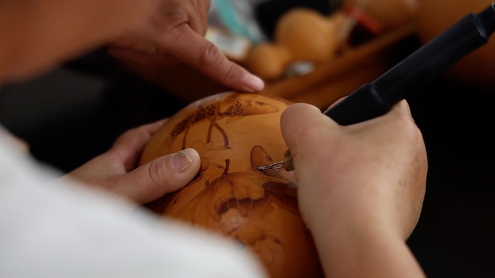 金秋10月,天津市濱海新區(qū)太平鎮(zhèn)的田野間,連片葫蘆地迎來豐收。在太平葫蘆特色產業(yè)園加工車間,工匠們以鐵為筆,在葫蘆上勾勒出精細的山水、花鳥或福祿圖案。經過打磨、烙畫、拋光等工序,普通葫蘆價值得到大幅提升。