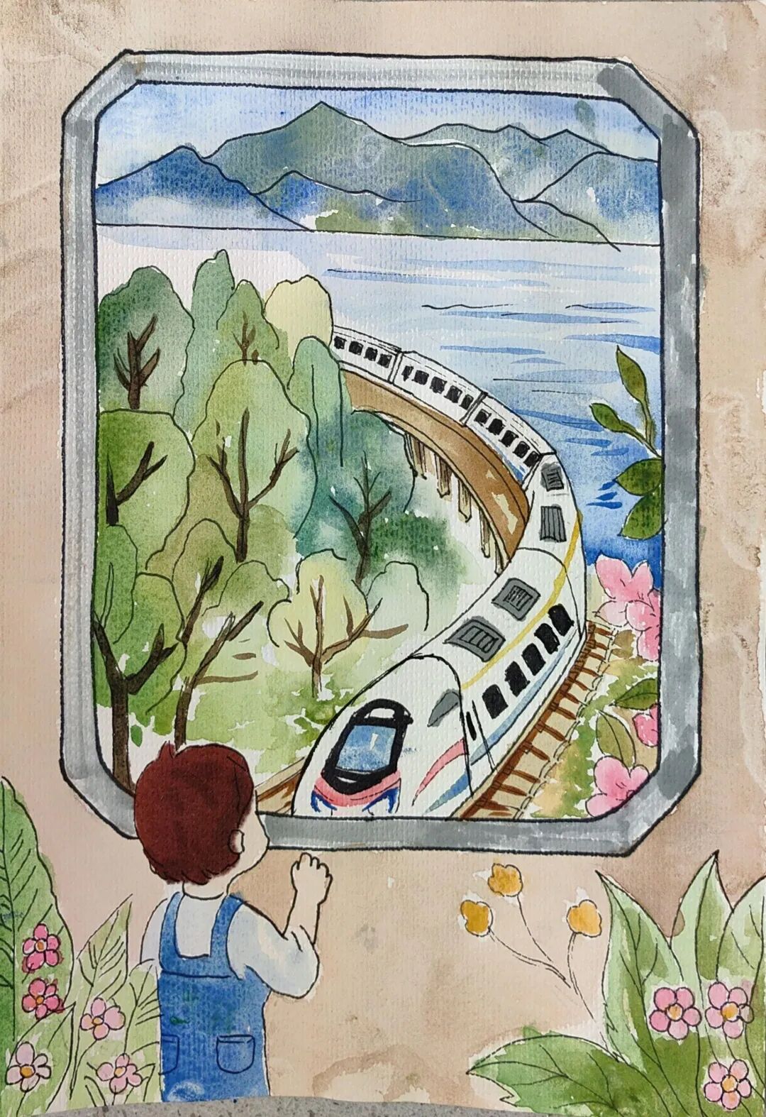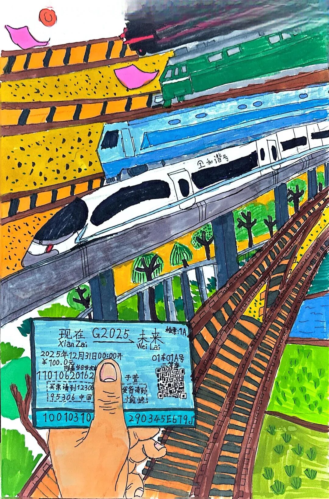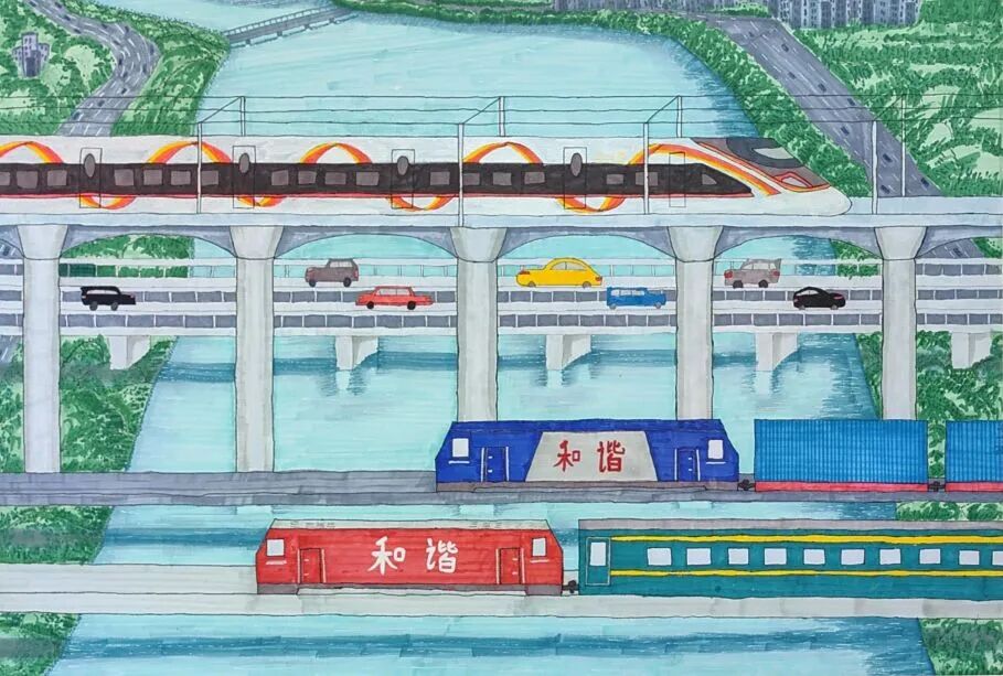 現(xiàn)在我坐在復(fù)興號(hào)里,看電子屏上顯示列車時(shí)速達(dá)到350公里,青檀樹在窗外連成流動(dòng)的綠瀑。乘務(wù)員推著餐車經(jīng)過(guò),玻璃幕墻外閃過(guò)曲阜孔廟的金色鴟吻。包里裝著曾曾祖父的鐵路修建圖影印件,那些泛黃的等高線正被新時(shí)代的測(cè)繪儀重新勾勒。