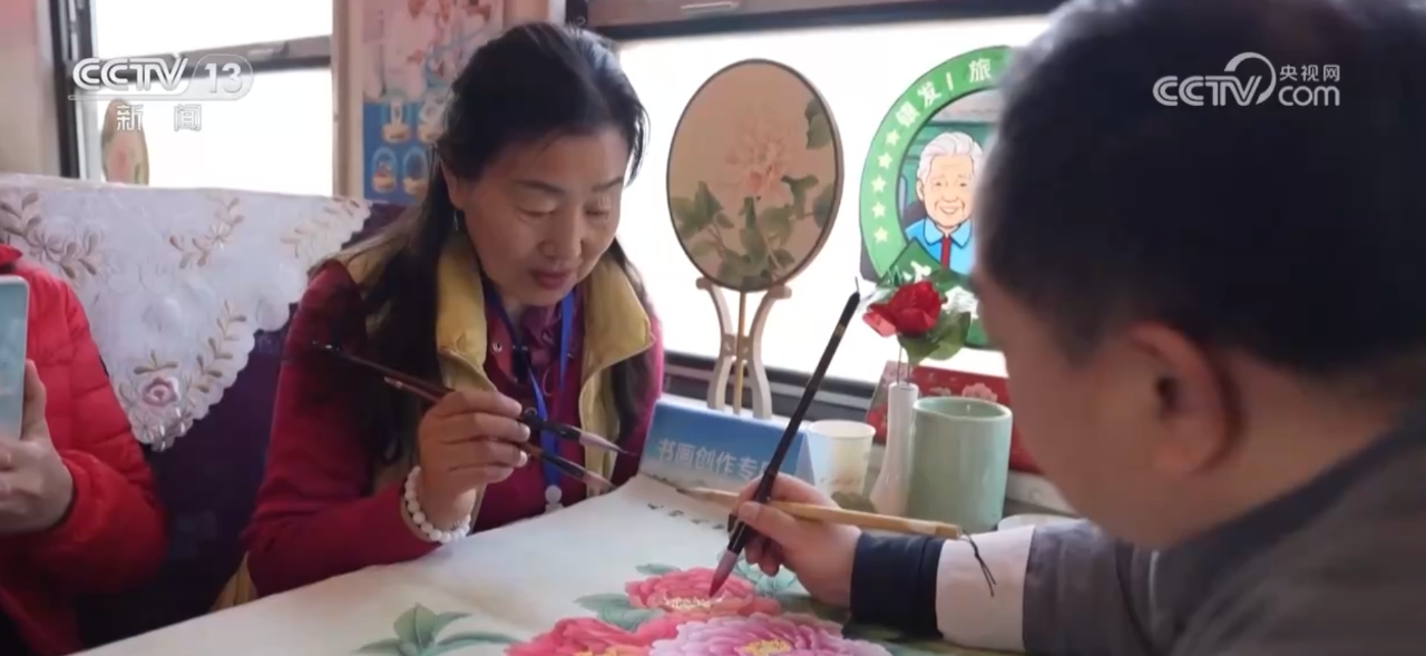 旅途中,旅客可以欣賞古箏古曲演繹、川劇變臉等表演,列車(chē)還為“銀發(fā)游客”專門(mén)定制了少鹽少油的餐食,提供醫(yī)療保障。