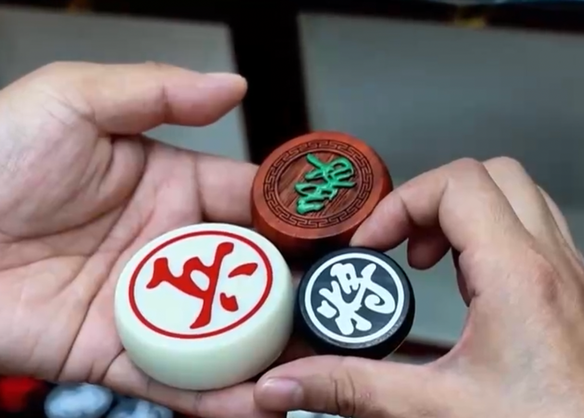 王秀仕說(shuō):“以前象棋棋子直徑最大做到6公分,現(xiàn)在為了迎合老年人需求,象棋棋子直徑做到7公分,字看得清楚、手感又好?!?/p>