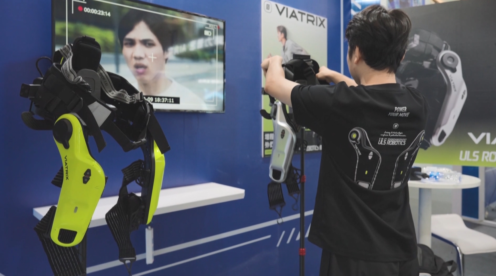 在這家來(lái)自上海的科技公司展位,穿上這套增程動(dòng)力外骨骼機(jī)器人,普通人也能有效減輕負(fù)重,讓登山、騎行和長(zhǎng)時(shí)間步行變得格外輕松。