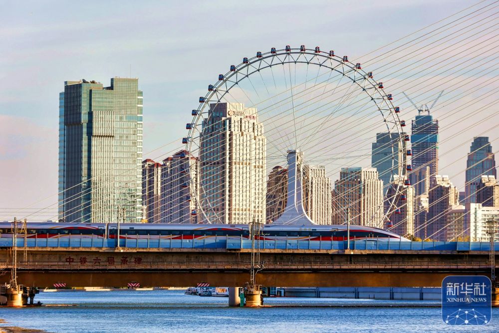 11月16日,動車組列車行駛在天津市境內(nèi)。新華社發(fā)(杜鵬輝攝)