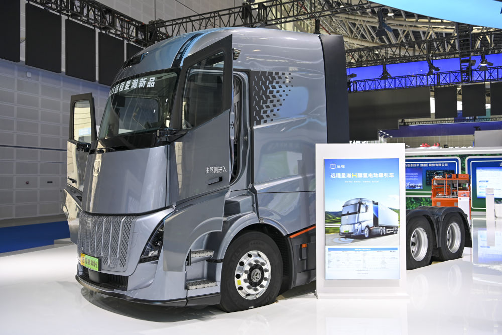 這是在2025年山西(太原)能源產(chǎn)業(yè)博覽會上展示的一款醇?xì)潆妱訝恳嚕?月27日攝)。新華社記者 楊晨光 攝