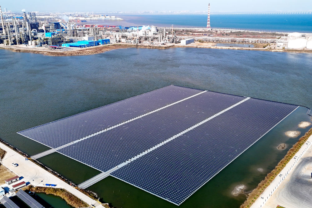 11月18日拍攝的中國石化青島煉化公司漂浮式光伏項目。新華社發(fā)(張進(jìn)剛攝)