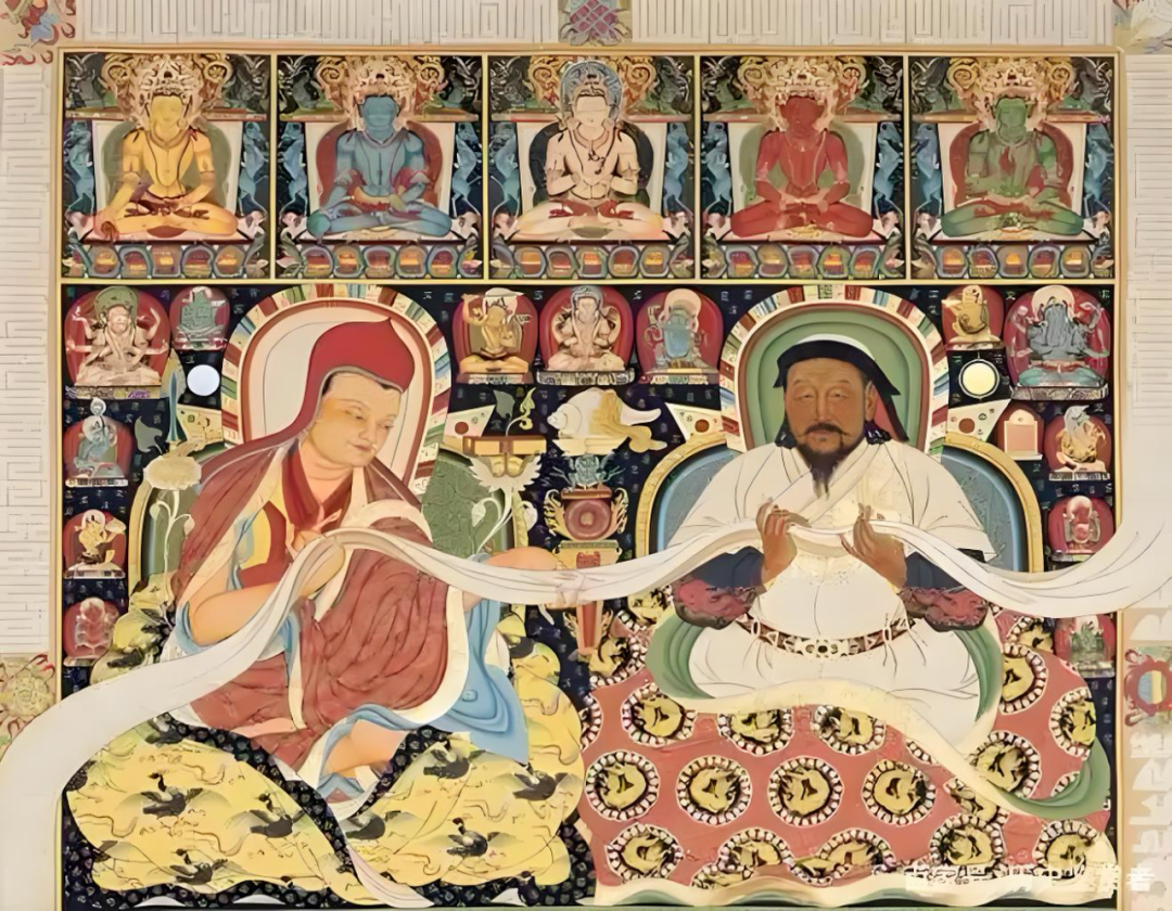 蒙古族自元朝以來普遍信仰藏傳佛教,也改變了中國北方和西北民族、邊疆的政治、地域和宗教文化面貌。同時,蒙古人長期以來在西藏地方的政治和宗教史上都扮演了極為重要的角色,從八思巴與忽必烈,到三世達賴喇嘛與俺答汗、五世達賴喇嘛與固始汗,他們之間都建立起了“施供關系”,體現(xiàn)了蒙藏之間緊密的政教關系。