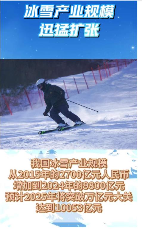 我國冰雪產(chǎn)業(yè)規(guī)模從2015年的2700億元人民幣增加到2024年的9800億元,預(yù)計2025年將突破萬億元大關(guān),達(dá)到10053億元。