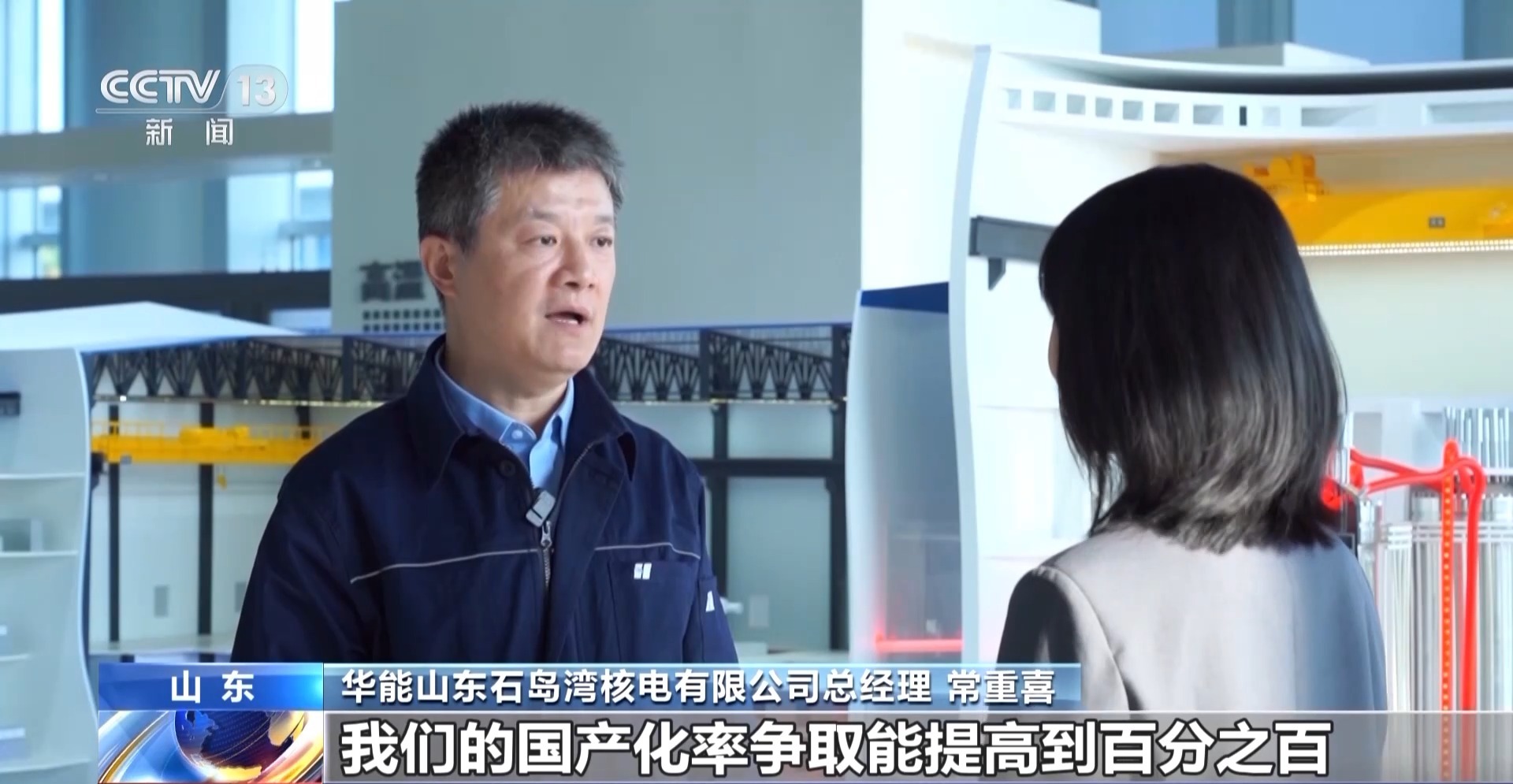 華能山東石島灣核電有限公司總經(jīng)理 常重喜:在“十五五”期間,國產(chǎn)化率爭取能提高到百分之百,同時(shí)提升整體系統(tǒng)設(shè)備的可靠性。在保證機(jī)組安全穩(wěn)定運(yùn)行的同時(shí),我們還會(huì)再做進(jìn)一步的研究,讓大國重器發(fā)揮更大的效能和作用。
