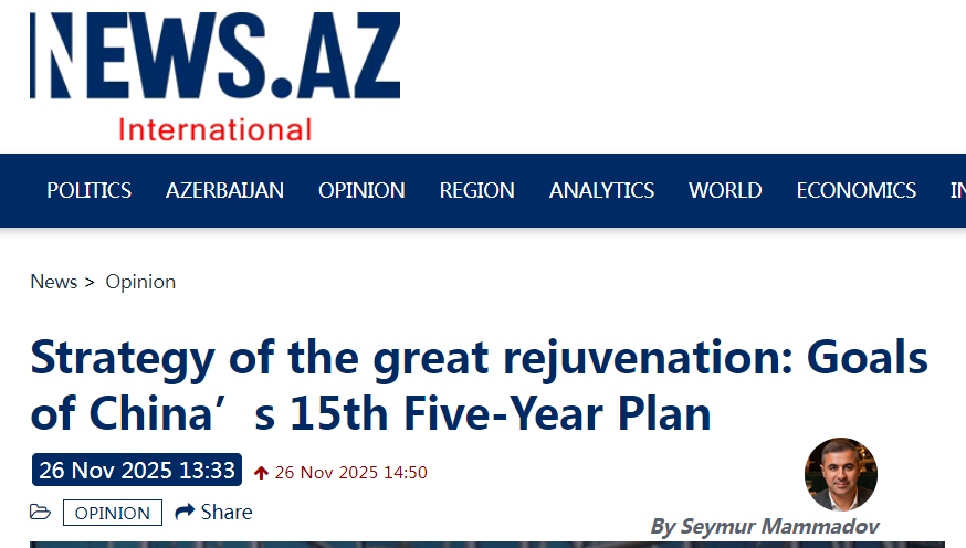 近日,國際專家俱樂部EurAsiaAz主任塞繆爾·馬邁多夫在阿塞拜疆“News.Az”國際新聞網發(fā)表文章稱,在全球進入“戰(zhàn)略不確定時代”的背景下,中國謀定而后動,以罕見的長遠戰(zhàn)略眼光和堅定的執(zhí)行力,給出了截然不同的答案。