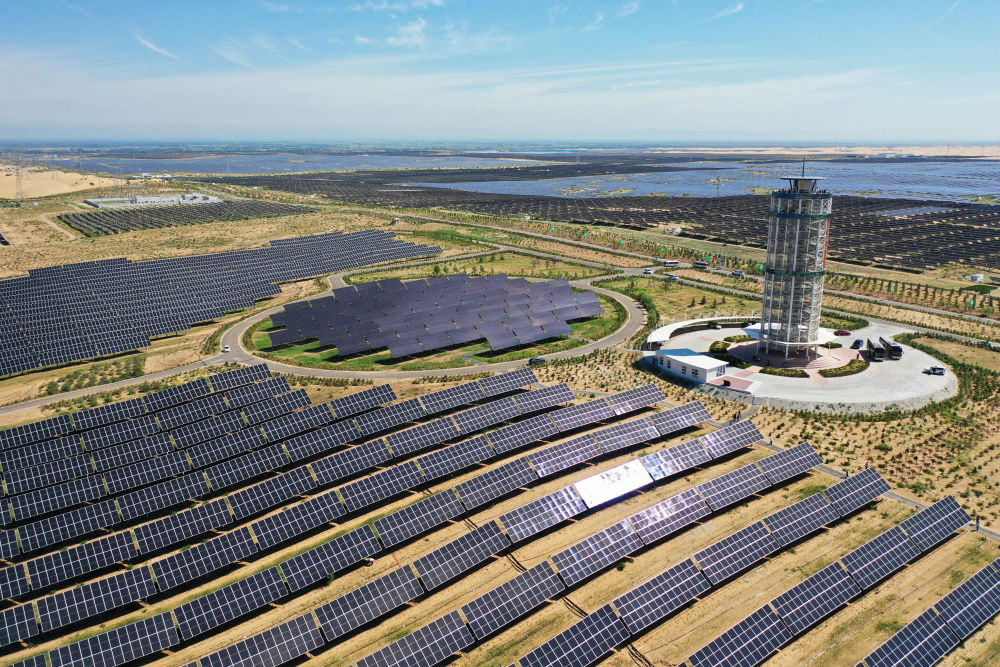 這是2025年7月30日拍攝的內(nèi)蒙古鄂爾多斯市達(dá)拉特旗光伏基地(無(wú)人機(jī)照片)。新華社記者 李志鵬 攝