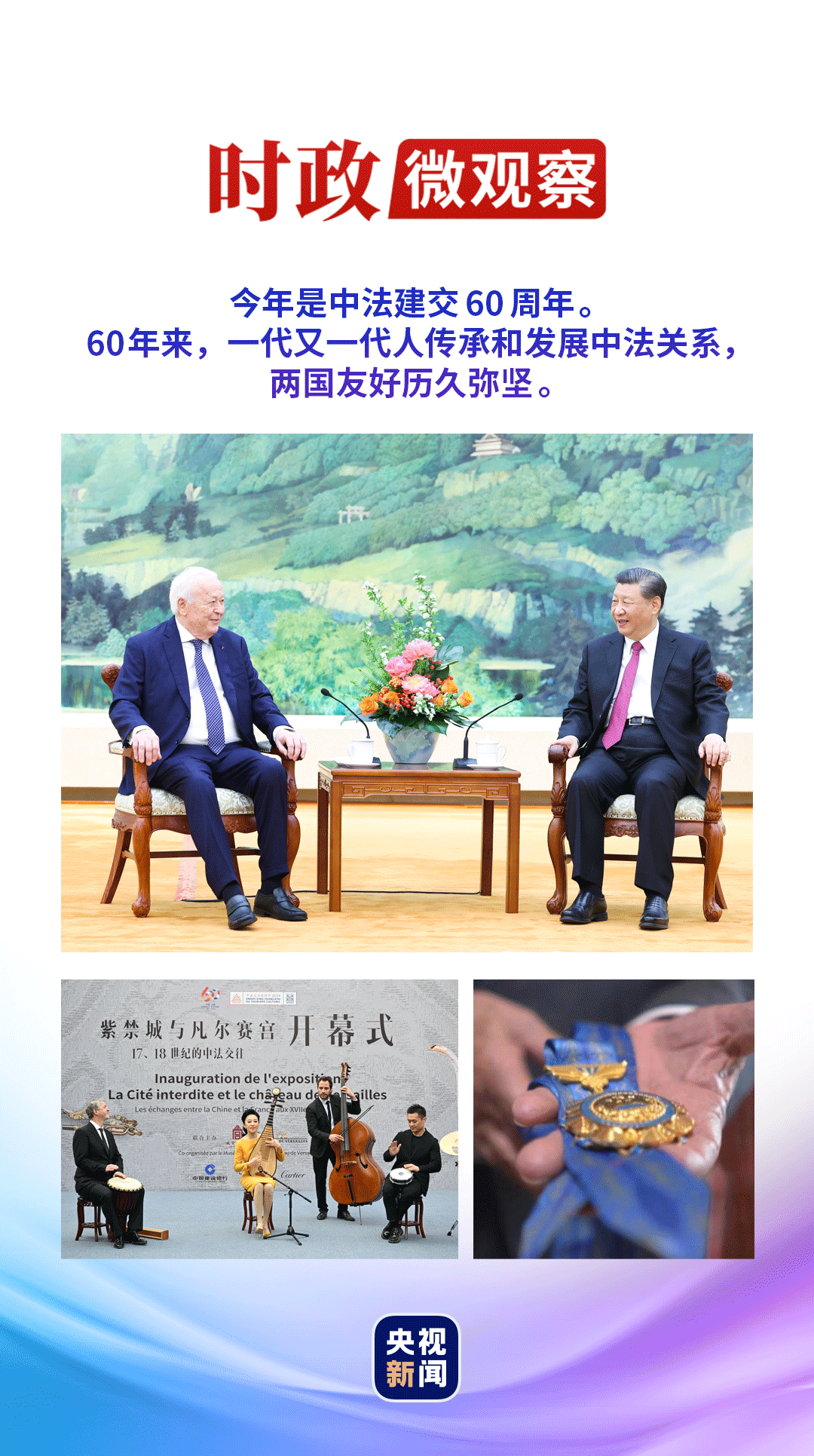 今年4月8日,再次會見中國人民這位老朋友,習近平主席撫今追昔:“60年來,一代又一代人傳承和發(fā)展中法關(guān)系,兩國友好歷久彌堅。中方珍視中法友誼,愿同法方進一步加強高層交往,密切交流合作,推動中法關(guān)系邁上更高水平?!?/p>