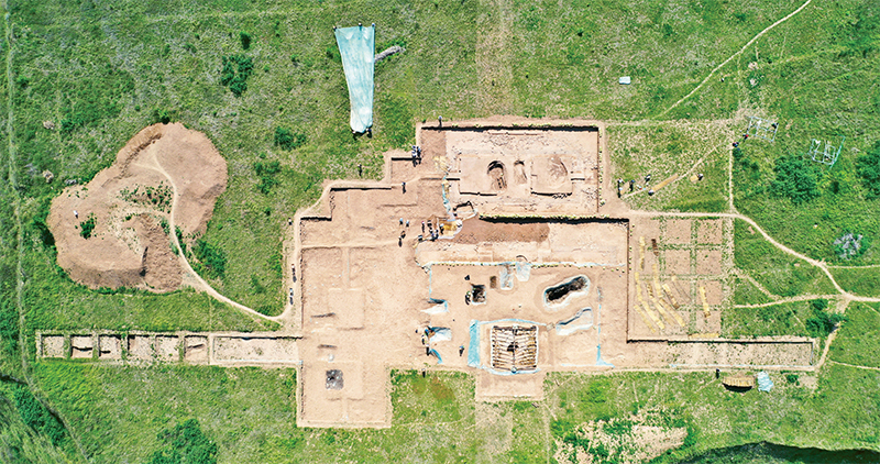 甘肅省隴南市禮縣一帶是早期秦文化發(fā)祥地,被譽為“秦人故里”。四角坪遺址位于禮縣四格子山頂部,是目前已發(fā)現(xiàn)的罕見的規(guī)模宏大、格局規(guī)整的秦代大型建筑群,體現(xiàn)了中國古代統(tǒng)一國家形成初期的風(fēng)格和氣魄,被評為2023年度全國十大考古新發(fā)現(xiàn)之一。圖為2022年6月10日拍攝的考古發(fā)掘現(xiàn)場。 新華社記者 陳斌/攝