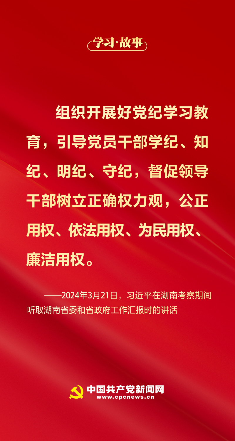 4月3日,中央黨的建設(shè)工作領(lǐng)導(dǎo)小組召開會議。會議指出,經(jīng)黨中央同意,自2024年4月至7月在全黨開展黨紀學(xué)習(xí)教育。這次黨紀學(xué)習(xí)教育,是加強黨的紀律建設(shè)、推動全面從嚴治黨向縱深發(fā)展的重要舉措。
