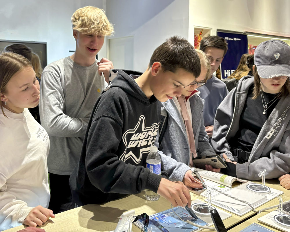 2024年4月9日,中德兩國(guó)中學(xué)生在位于北京中關(guān)村軟件園一家企業(yè)參觀。 新華社記者 趙旭 攝
