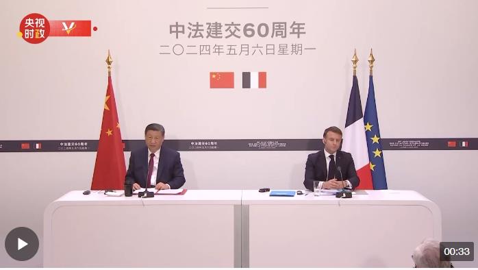 當?shù)貢r間5月6日晚,習近平同法國總統(tǒng)馬克龍共同會見記者。