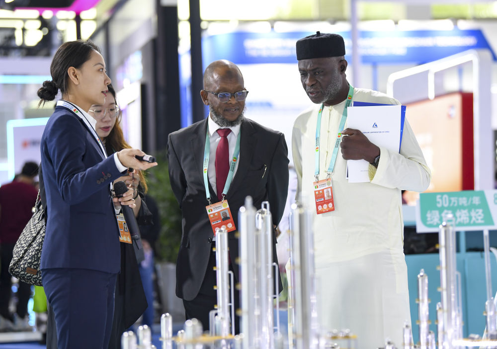 2023年9月22日,嘉賓在第六屆中阿博覽會(huì)上了解清潔能源項(xiàng)目。新華社記者 馮開(kāi)華 攝