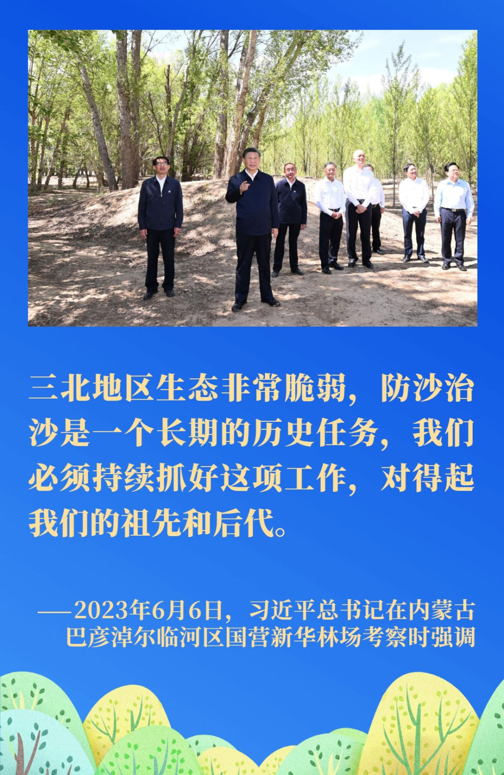 荒漠化是影響人類生存和發(fā)展的全球性重大生態(tài)問(wèn)題。我國(guó)是世界上荒漠化最嚴(yán)重的國(guó)家之一。習(xí)近平總書(shū)記一直將防沙治沙牽掛在心,多次對(duì)荒漠化防治、推進(jìn)“三北”重點(diǎn)生態(tài)工程建設(shè)等工作作出重要指示。