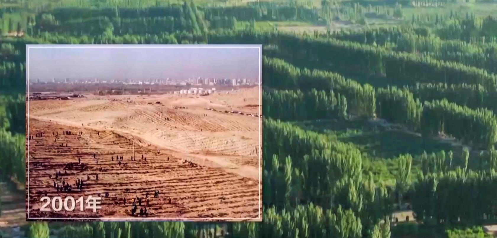 初夏,新疆阿克蘇柯柯牙鎮(zhèn),一排排楊樹郁郁蔥蔥。曾經(jīng),這里一年有100天刮沙塵暴,一夜可摧毀萬畝農(nóng)田。