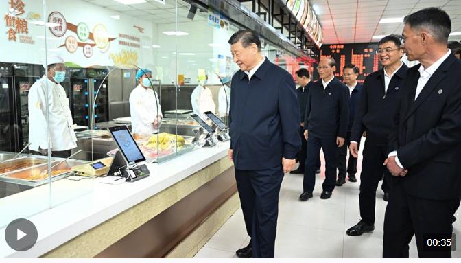 18日下午,習(xí)近平總書記來到果洛西寧民族中學(xué),走進(jìn)食堂察看學(xué)生就餐條件,囑咐食堂工作人員一定要確保學(xué)生飲食安全、營(yíng)養(yǎng)可口。