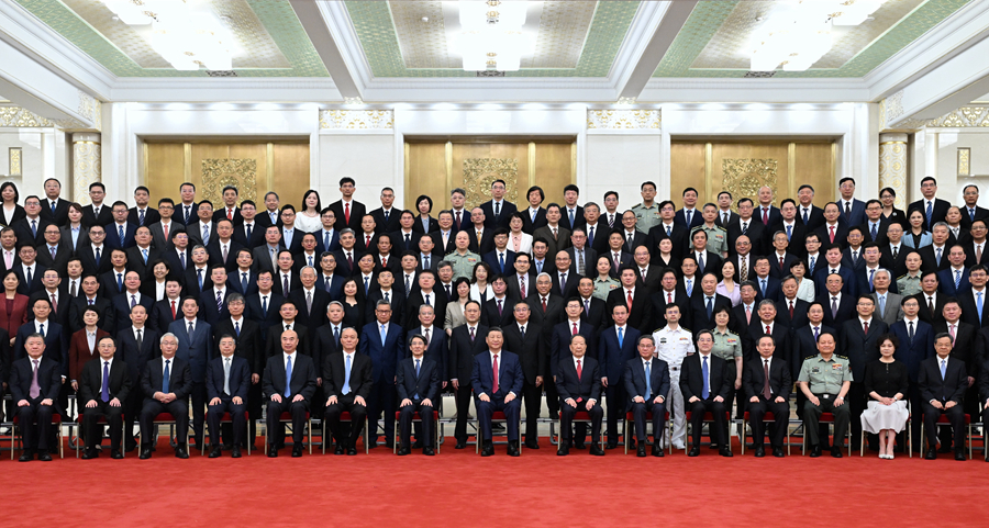 6月24日,全國科技大會、國家科學(xué)技術(shù)獎勵大會和中國科學(xué)院第二十一次院士大會、中國工程院第十七次院士大會在北京人民大會堂隆重召開。會前,習(xí)近平等領(lǐng)導(dǎo)同志親切會見國家科學(xué)技術(shù)獎獲獎代表,并同大家合影留念。新華社記者 謝環(huán)馳 攝