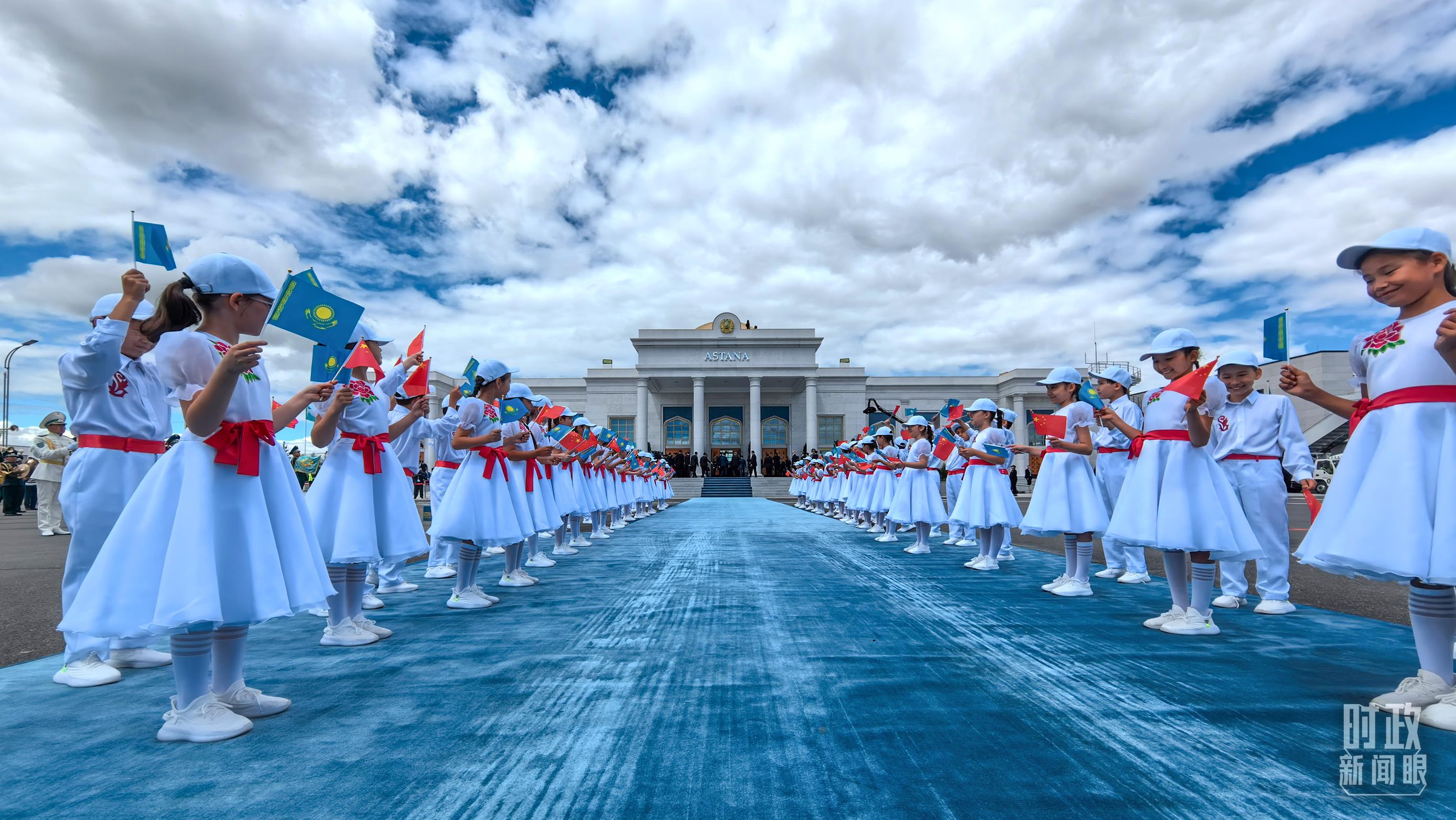 托卡耶夫總統(tǒng)在機(jī)場(chǎng)為習(xí)主席舉行了盛大隆重的迎賓儀式。100余名儀仗兵英姿挺拔,軍樂(lè)團(tuán)奏響迎賓曲和迎賓號(hào)角。近百名哈薩克斯坦兒童揮舞中哈兩國(guó)國(guó)旗,歡呼“您好”,熱烈歡迎習(xí)主席到訪。