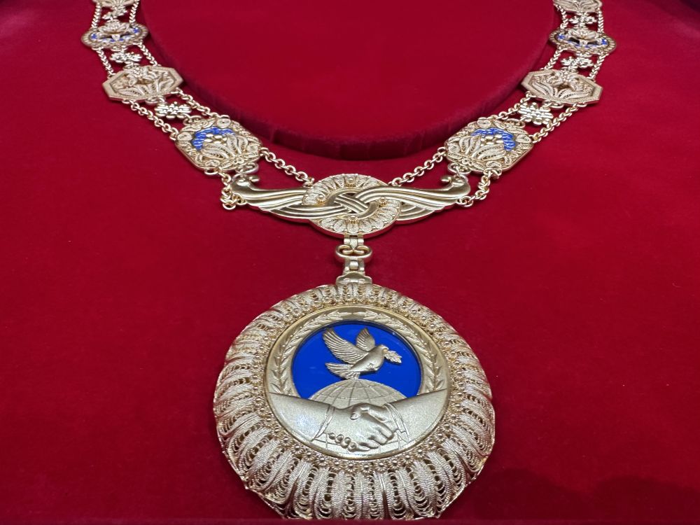 習(xí)近平主席在杜尚別總統(tǒng)府舉行隆重授勛儀式,向拉赫蒙總統(tǒng)頒授“友誼勛章”。這是中方首次在境外舉行勛章頒授儀式。