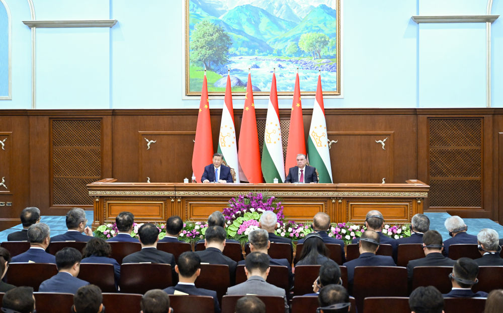 兩國(guó)元首共同簽署《中華人民共和國(guó)和塔吉克斯坦共和國(guó)關(guān)于發(fā)展新時(shí)代全面戰(zhàn)略合作伙伴關(guān)系的聯(lián)合聲明》,并共同見證交換經(jīng)貿(mào)、投資、互聯(lián)互通、關(guān)鍵礦產(chǎn)、安全、人文等領(lǐng)域數(shù)十項(xiàng)雙邊合作文件。