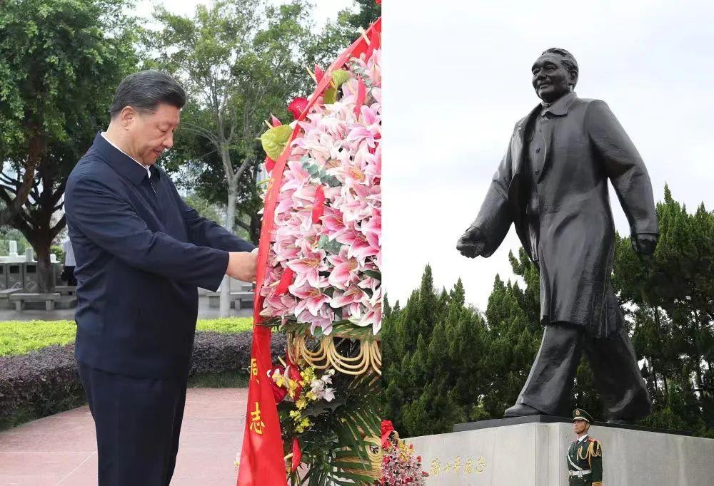 △2020年10月14日,深圳經(jīng)濟特區(qū)建立40周年慶祝大會在廣東深圳市隆重舉行,習(xí)近平總書記在會上發(fā)表重要講話。這是當(dāng)天下午,總書記來到蓮花山公園,向鄧小平同志銅像敬獻(xiàn)花籃。