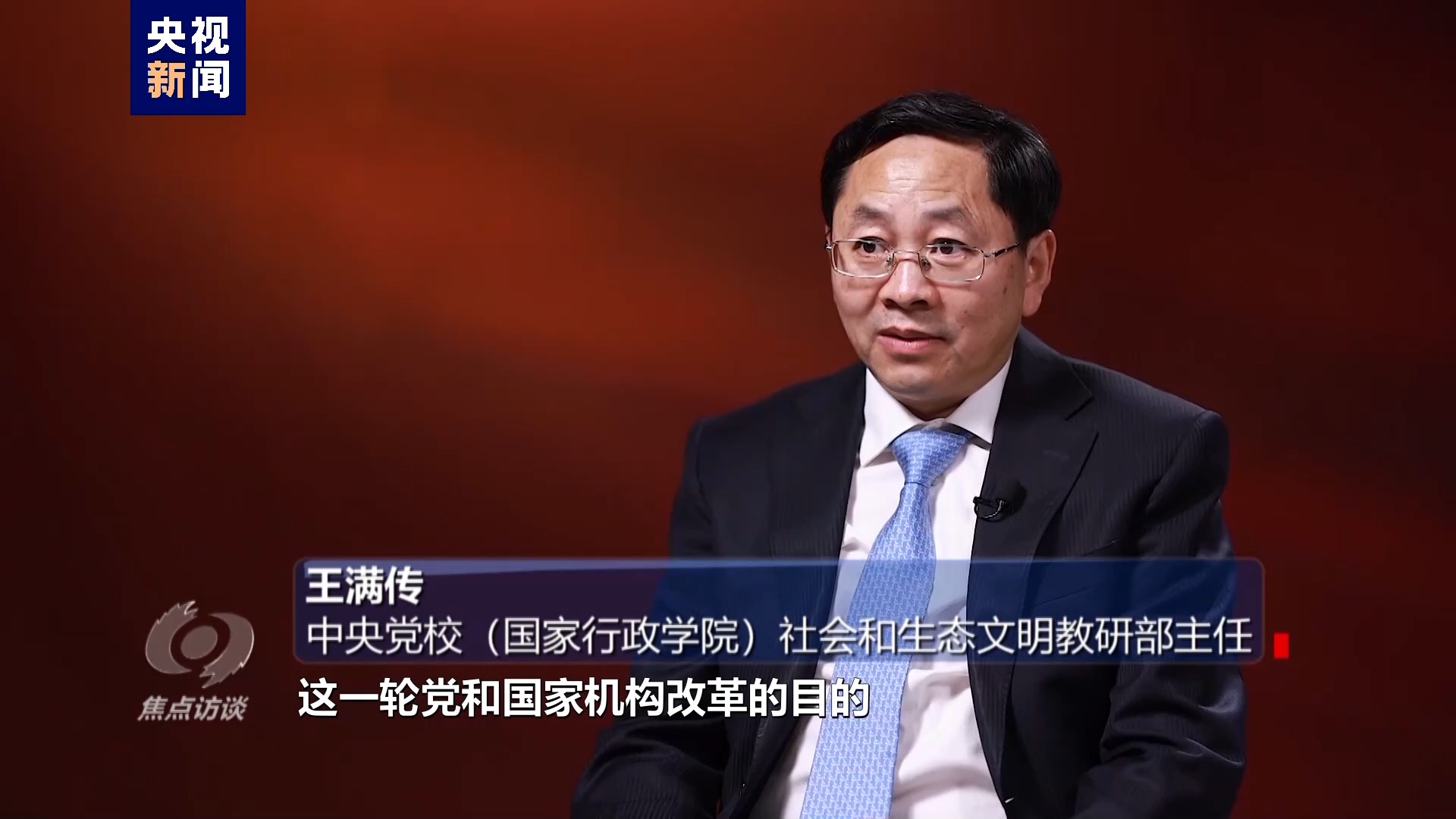 中央黨校(國家行政學院)社會和生態(tài)文明教研部主任 王滿傳:通過這一系列重要的舉措,達到了習近平總書記提出的這一輪黨和國家機構改革的目的。就是推動黨對社會主義現(xiàn)代化建設的領導,在機構設置上更加科學、在職能配置上更加優(yōu)化、在管理運行上更加高效。
