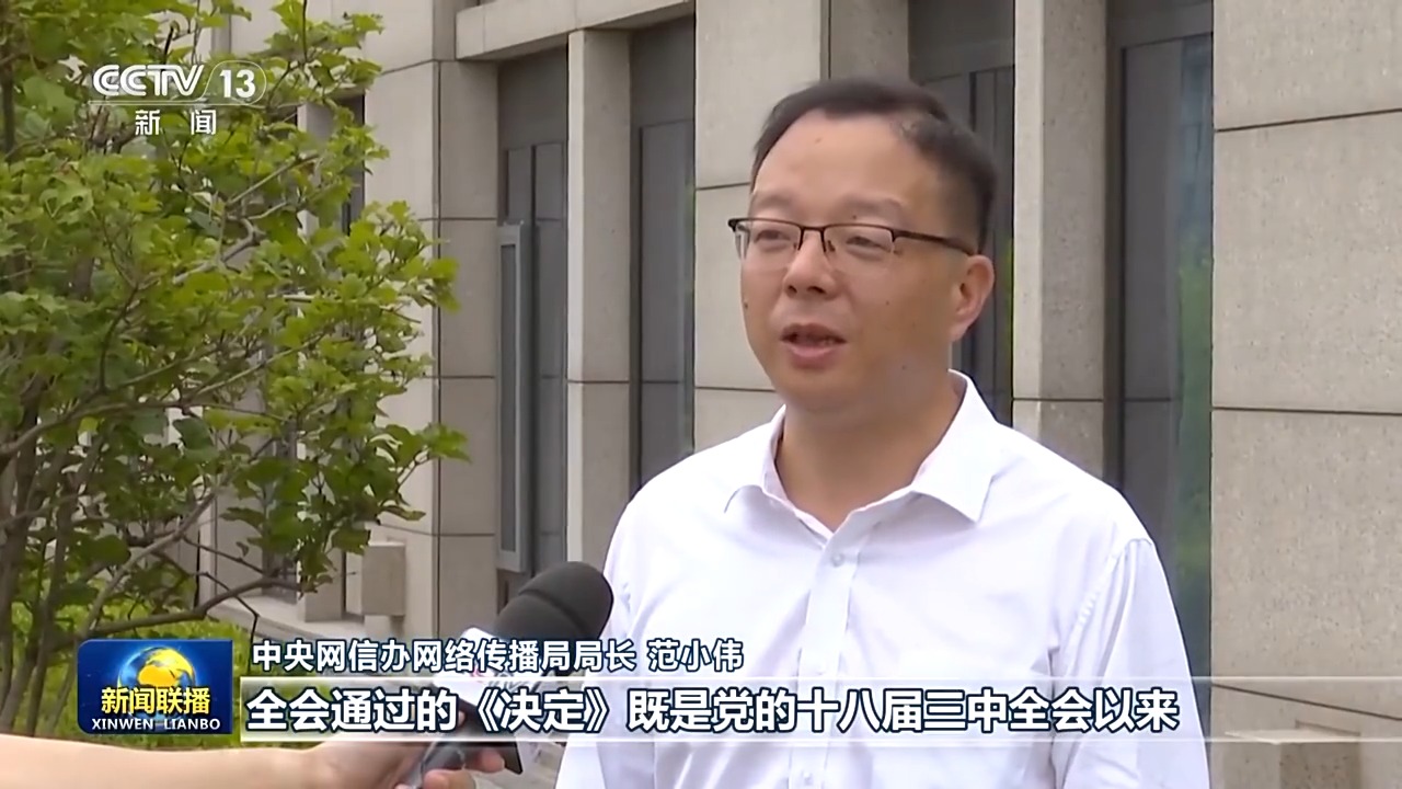 中央網(wǎng)信辦網(wǎng)絡傳播局局長 范小偉:全會通過的《決定》,既是黨的十八屆三中全會以來全面深化改革的實踐續(xù)篇,也是新時代新征程推進中國式現(xiàn)代化的時代新篇。我們將深入學習貫徹全會精神,進一步增強堅定擁護“兩個確立”、堅決做到“兩個維護”的政治自覺,適應信息技術(shù)發(fā)展新形勢,不斷健全網(wǎng)絡綜合治理體系,進一步加強網(wǎng)絡文明建設(shè),更好服務黨和國家工作大局。