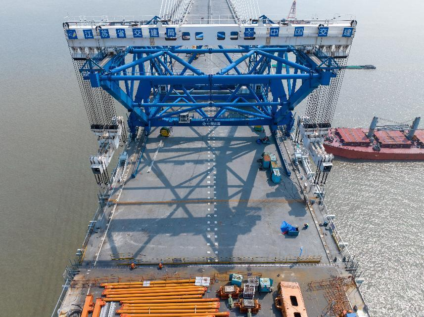 在江蘇,長(zhǎng)達(dá)1208米的世界最大跨度斜拉橋——常泰長(zhǎng)江大橋全橋貫通。建設(shè)單位在大橋建設(shè)過(guò)程中投用了QMD-2000型全球最大噸位橋面吊機(jī),研發(fā)了抗拉強(qiáng)度高達(dá)2100兆帕的斜拉索,打造出國(guó)內(nèi)首條鋼桁梁全過(guò)程智能生產(chǎn)線……依托5G、大數(shù)據(jù)、物聯(lián)網(wǎng)等信息技術(shù),常泰長(zhǎng)江大橋建設(shè)還實(shí)現(xiàn)了對(duì)施工全過(guò)程的“可知、可測(cè)、可控”。