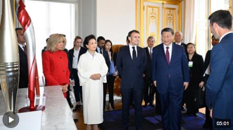 兩個多月前,國家主席習近平在巴黎愛麗舍宮同法國總統(tǒng)馬克龍舉行會談。會談前,兩國元首夫婦互贈禮品。習近平主席贈送給馬克龍總統(tǒng)的是北京雙奧火炬,馬克龍總統(tǒng)則以巴黎奧運火炬回贈。習近平主席說:“法國是一個體育強國,我衷心祝愿巴黎奧運會取得成功。中方將派出高水平代表團赴法參賽?!?/p>