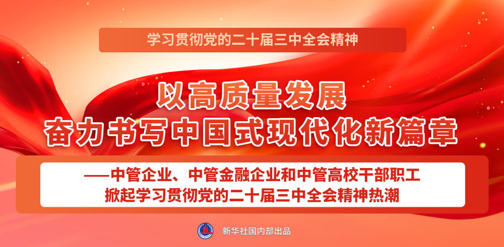 點(diǎn)擊標(biāo)題看詳情:以高質(zhì)量發(fā)展奮力書寫中國式現(xiàn)代化新篇章——中管企業(yè)、中管金融企業(yè)和中管高校干部職工掀起學(xué)習(xí)貫徹黨的二十屆三中全會(huì)精神熱潮