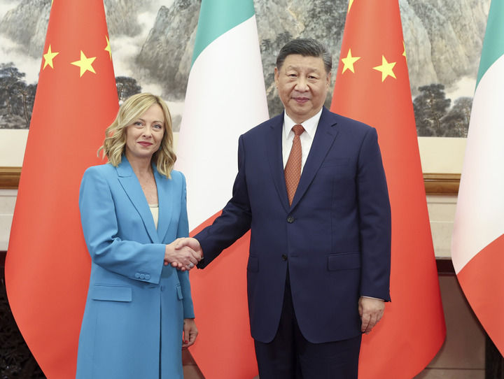 梅洛尼表示,很高興在2022年11月巴厘島會面后應(yīng)約來華訪問。今年恰逢意中建立全面戰(zhàn)略伙伴關(guān)系20周年和馬可·波羅逝世700周年。意中兩國作為文明古國,一直彼此欣賞、相互借鑒。當(dāng)前國際形勢深刻演變,中國作為重要大國,在應(yīng)對全球性挑戰(zhàn)方面作用不可替代。意方高度重視中國的國際地位和作用,愿意傳承源遠(yuǎn)流長的絲路精神,同中方發(fā)展更為緊密、更高水平的伙伴關(guān)系,開辟意中全面戰(zhàn)略伙伴關(guān)系新篇章,為世界和平與進(jìn)步作出新貢獻(xiàn)。意方堅持奉行一個中國政策,希望同中方加強(qiáng)對話合作,挖掘更多潛力,深化兩國經(jīng)貿(mào)投資、電動汽車、人工智能等領(lǐng)域合作,密切人文交流,推動更多意大利產(chǎn)品進(jìn)入中國市場。意方反對“脫鉤斷鏈”和保護(hù)主義,愿為推動歐盟同中國關(guān)系走深走實發(fā)揮積極作用。