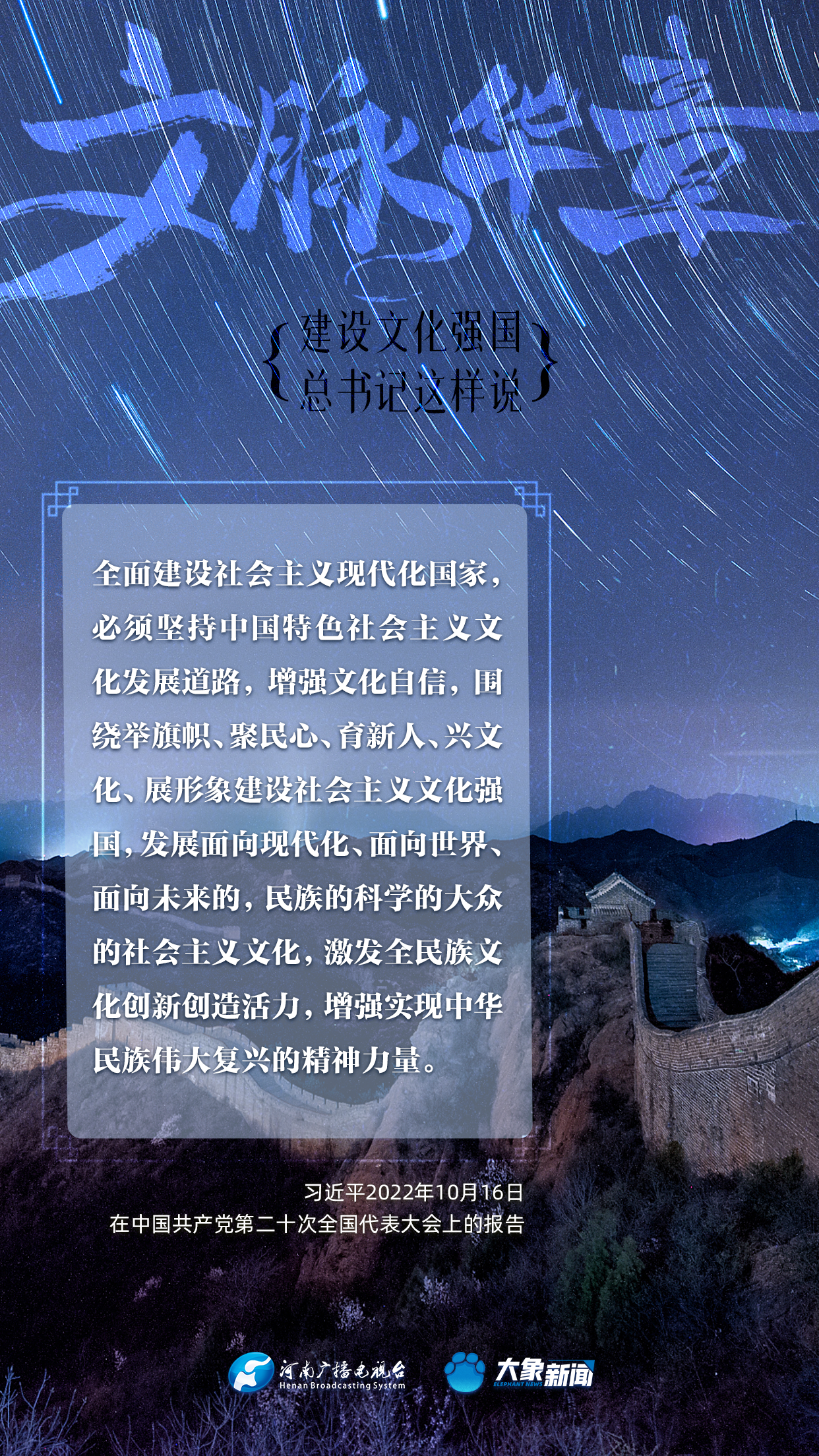 黨的十八大以來,習(xí)近平總書記站在全局和戰(zhàn)略高度,就建設(shè)社會(huì)主義文化強(qiáng)國(guó)提出一系列新思想新觀點(diǎn)新論斷,為我們堅(jiān)定文化自信,堅(jiān)持中國(guó)特色社會(huì)主義文化發(fā)展道路,提供了指引。大象新聞與您一起學(xué)習(xí)、領(lǐng)悟。