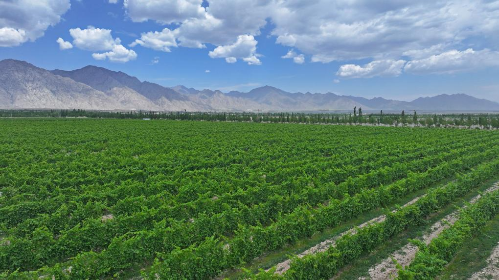 閩寧鎮(zhèn)地處寧夏賀蘭山東麓。這里日照充足、熱量和礦物質(zhì)豐富、土壤透氣性好、晝夜溫差大、降水量少,是葡萄種植的黃金地帶。