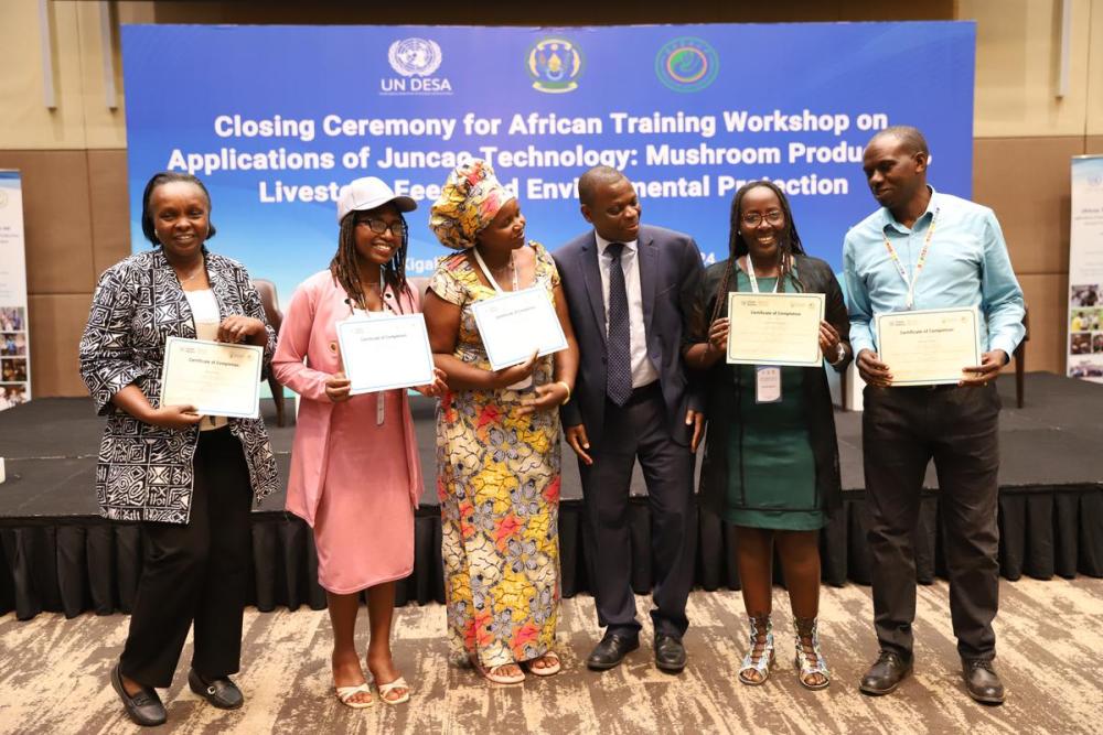 8月初,在非洲地區(qū)菌草技術(shù)培訓(xùn)班舉辦期間,聯(lián)合國(guó)官員和使團(tuán)代表團(tuán)專程赴盧旺達(dá)考察菌草技術(shù)和產(chǎn)業(yè)在非洲地區(qū)的發(fā)展。“我很高興同其他聯(lián)合國(guó)官員一起,親眼見證菌草技術(shù)以實(shí)際行動(dòng)造福民眾?!甭?lián)合國(guó)秘書長(zhǎng)辦公室主任考特尼·拉特雷說(shuō),菌草技術(shù)具有“可負(fù)擔(dān)”的突出優(yōu)勢(shì),“對(duì)非洲大陸所有發(fā)展中國(guó)家很有價(jià)值、非常適用”。