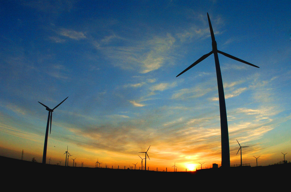 2005年,吉林省白城市通榆縣境內幾十部風力發(fā)電機組在工作。新華社發(fā)