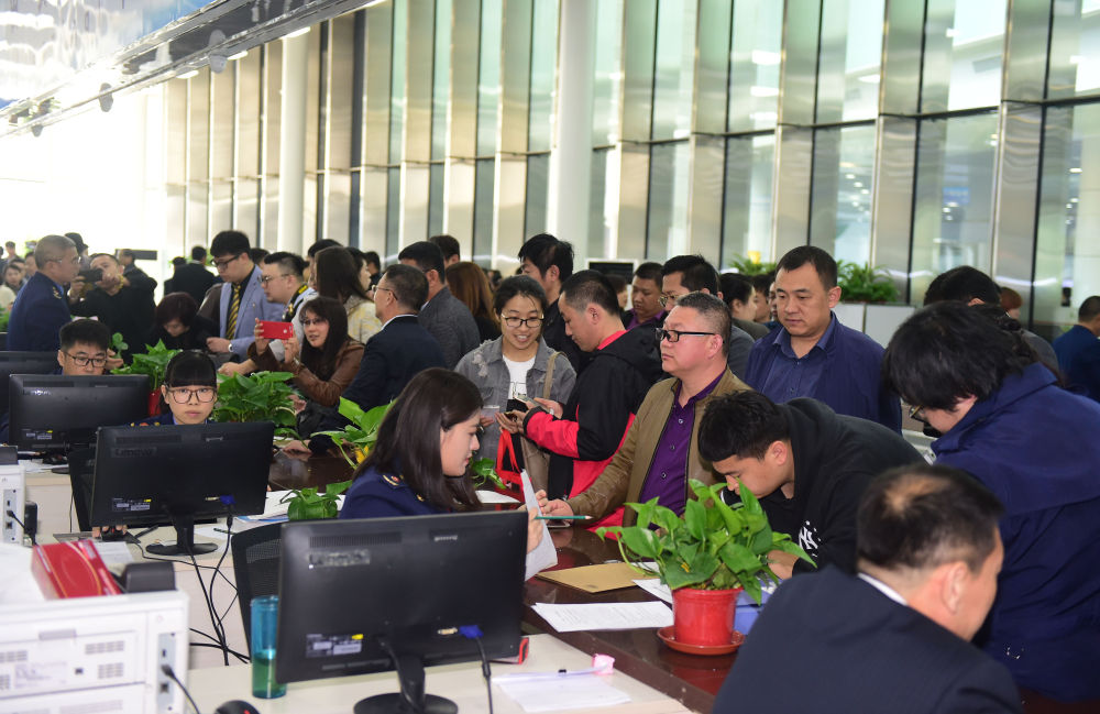2017年4月10日,中國(遼寧)自由貿易試驗區(qū)沈陽片區(qū)揭牌當日,眾多企業(yè)咨詢注冊。新華社記者楊青 攝
