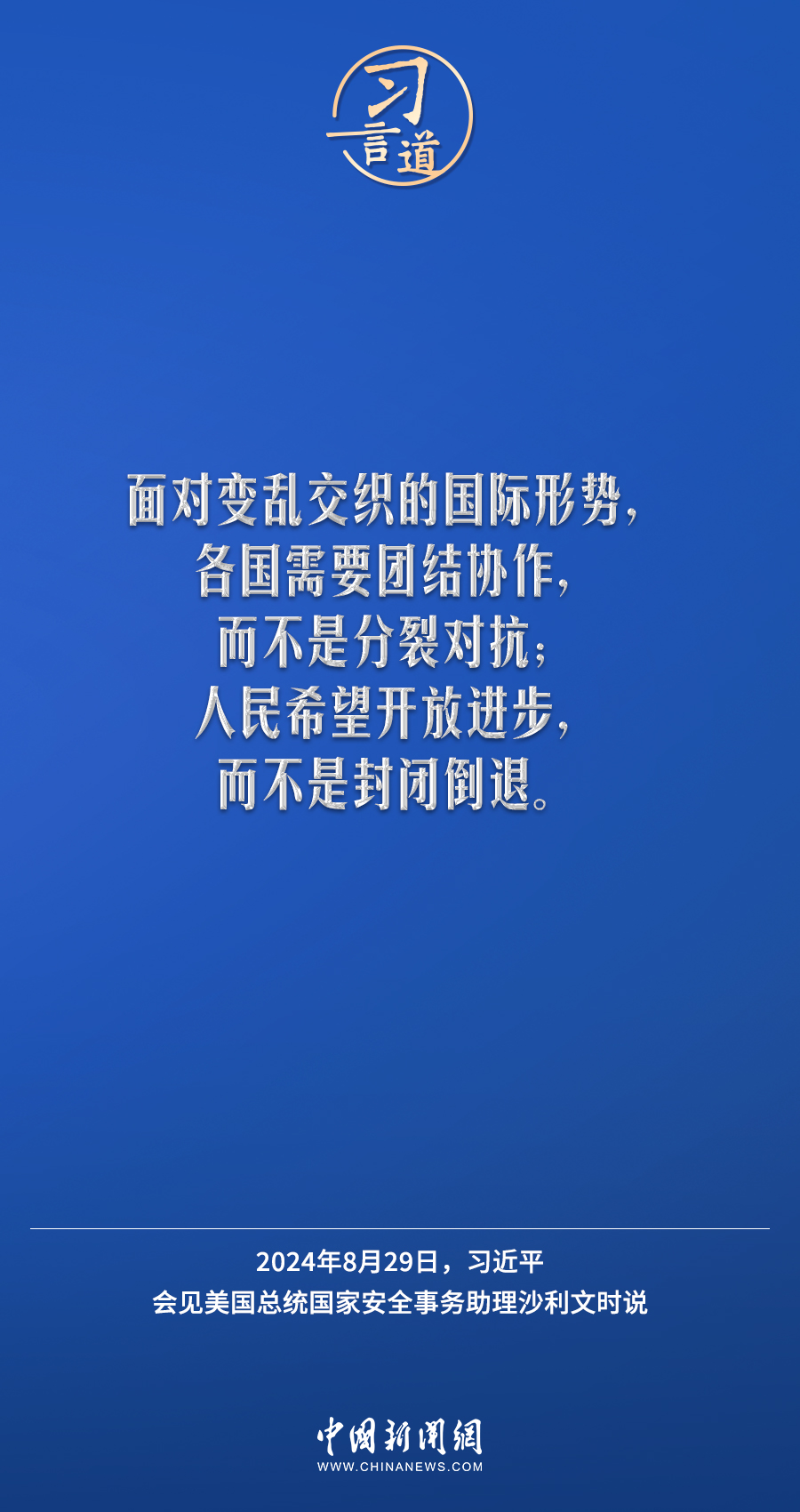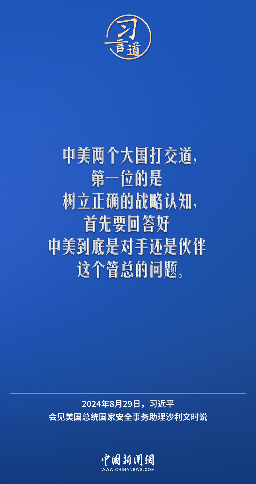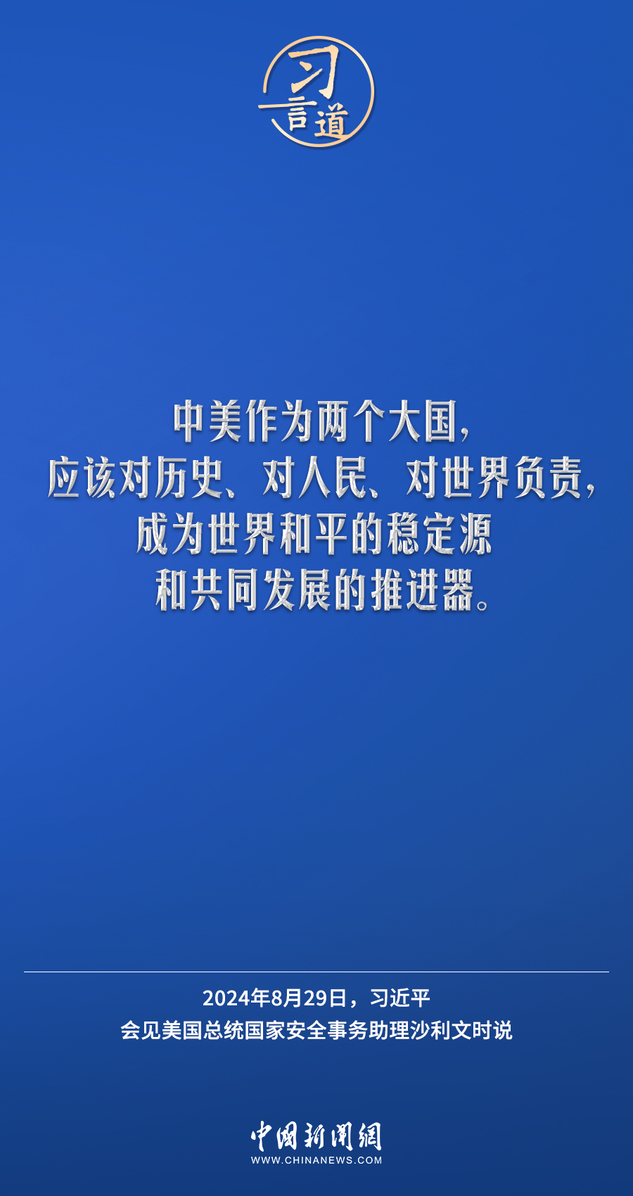 8月29日,國(guó)家主席習(xí)近平在北京人民大會(huì)堂會(huì)見(jiàn)美國(guó)總統(tǒng)國(guó)家安全事務(wù)助理沙利文。習(xí)近平指出——