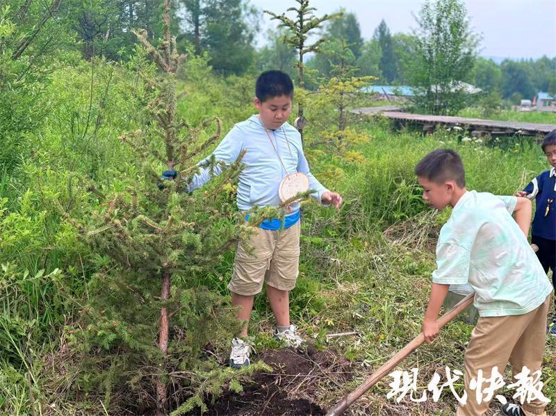 這樣的美麗風(fēng)景讓第一次來(lái)到大草原的周云昊很興奮?!拔覀儚漠?dāng)?shù)亓私獾?,這是一代又一代人努力的結(jié)果,讓我們也深切感受到生態(tài)保護(hù)的重要性?!毖袑W(xué)途中,周云昊和小伙伴們還專(zhuān)門(mén)在當(dāng)?shù)亓謭?chǎng)種下一棵樹(shù)?!跋M芙】甸L(zhǎng)大,成為守護(hù)綠色草原的小衛(wèi)士?!?/p>