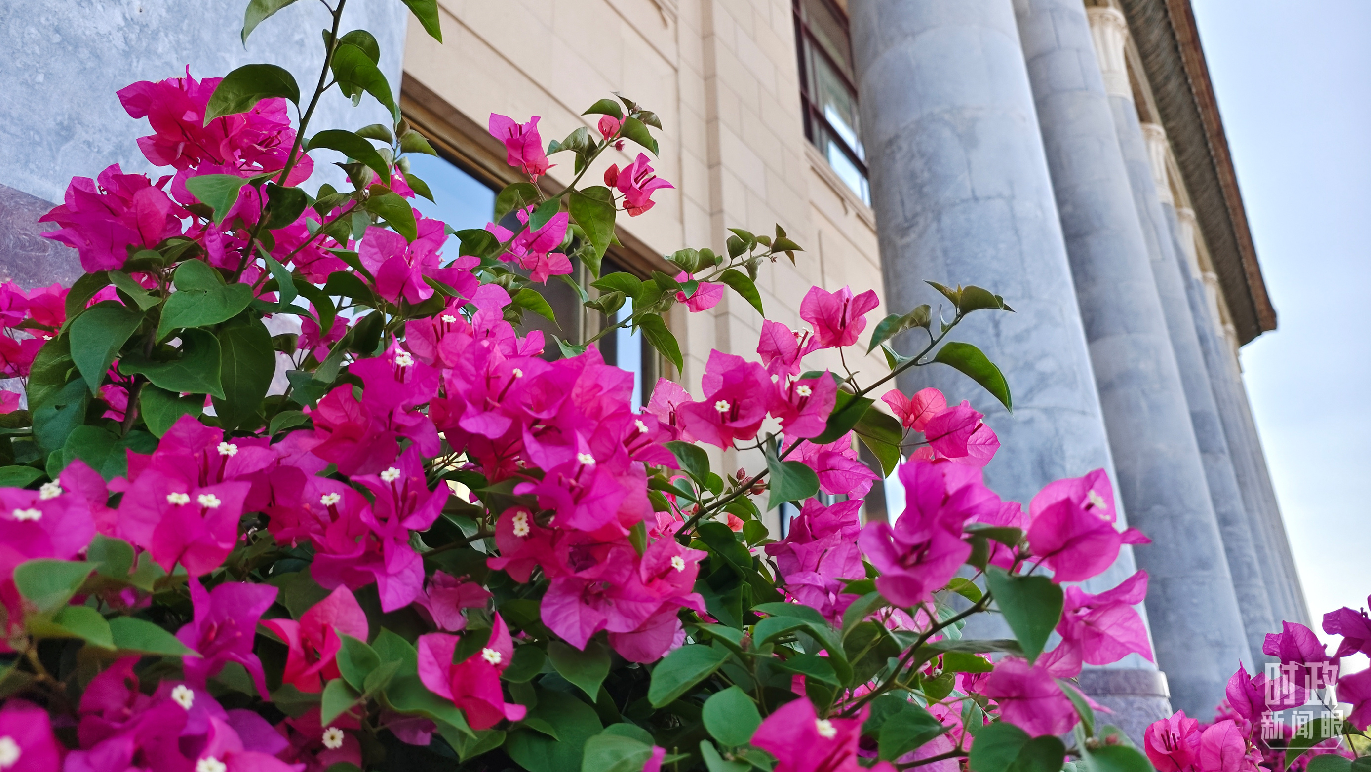 人民大會(huì)堂外花團(tuán)錦簇。(總臺(tái)央視記者韓銳拍攝)