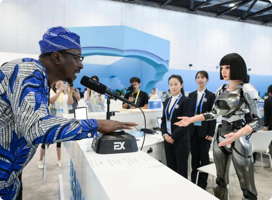 △中國剛剛在世界機器人大會上展出的智能語音機器人也在中非合作論壇上亮相