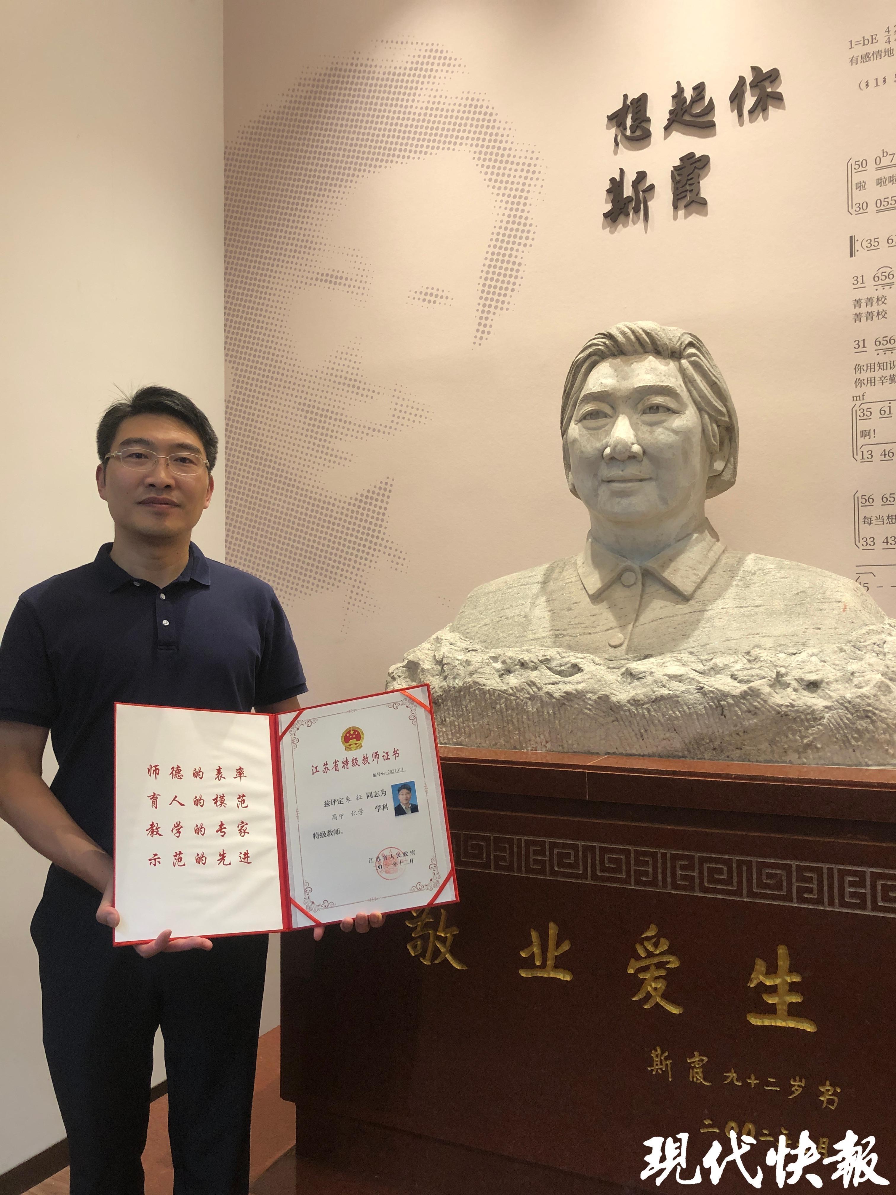 今年9月的一個下午,朱征走進(jìn)南京市中華中學(xué)高一的課堂,為學(xué)生們上化學(xué)課。朱征是江蘇省化學(xué)特級教師,也是中華中學(xué)校長,已經(jīng)從教24年。他的另一個身份,是著名教育家斯霞最小的孫輩,從斯霞老師算起,家中三代人出了11位教師。