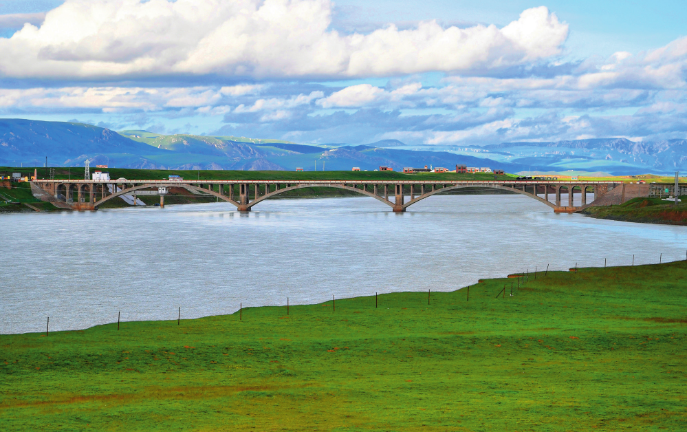 甘肅省甘南藏族自治州瑪曲縣城郊的黃河大橋附近的沙化退化草場(chǎng)已經(jīng)復(fù)綠(2023 年7月6日攝) 陳斌攝 /本刊