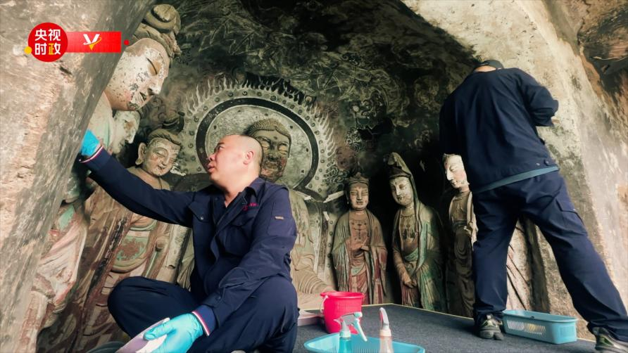 麥積山林區(qū)多雨潮濕,塑像和壁畫容易出現(xiàn)骨架糟朽、前傾、空鼓、開(kāi)裂、脫色等病害。近年來(lái),當(dāng)?shù)匚奈锉Wo(hù)單位通過(guò)不斷加固、修復(fù)、滲水治理、生物防治和數(shù)字化采集等科學(xué)措施,認(rèn)真做好石窟文物保護(hù)、修復(fù)、傳承、利用工作,積極推進(jìn)中國(guó)傳統(tǒng)雕塑繼承與創(chuàng)新。