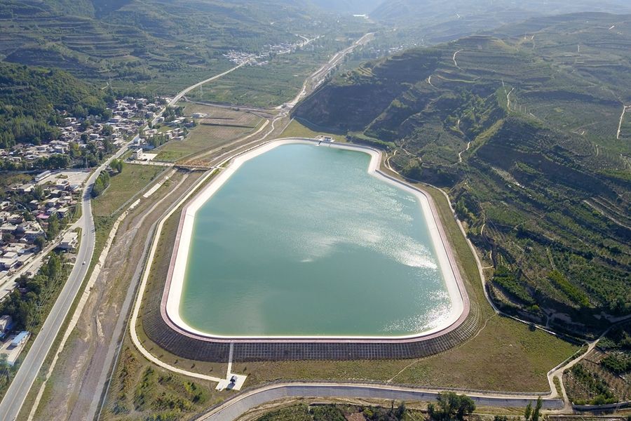 這是在天水市拍攝的已投用的天水城區(qū)引洮供水工程楊家灣調(diào)蓄水池(無(wú)人機(jī)照片)。新華社記者 范培珅 攝