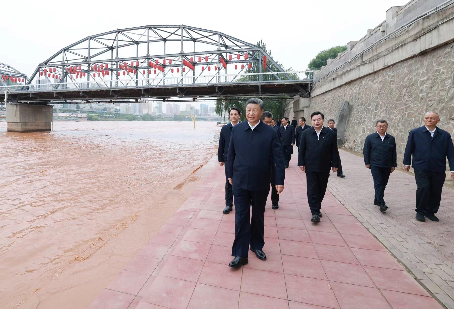 9月11日下午,甘肅蘭州市黃河蘭州中山橋段,習(xí)近平總書(shū)記了解當(dāng)?shù)赝苿?dòng)黃河流域生態(tài)保護(hù)等情況。