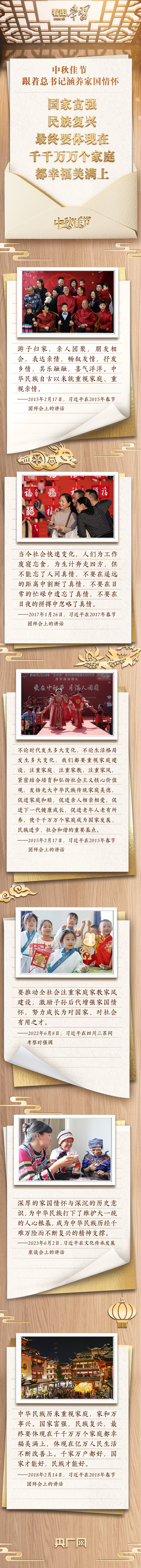 每逢佳節(jié)倍思親。中華民族自古以來便有重視家庭、家國一體的情懷。黨的十八大以來,習近平總書記提出以人民為中心的發(fā)展思想,把人民對美好生活的向往作為奮斗目標,注重加強家庭家教家風建設(shè),以小家庭的和睦美滿促進國家社會和諧穩(wěn)定。