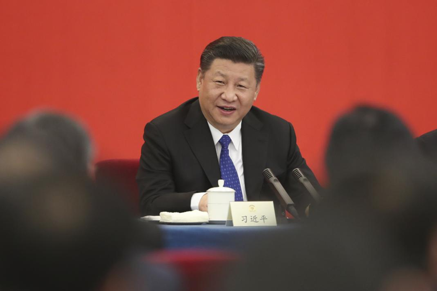 2018年3月4日下午,中共中央總書記、國家主席、中央軍委主席習(xí)近平看望參加全國政協(xié)十三屆一次會(huì)議的民盟、致公黨、無黨派人士、僑聯(lián)界委員,并參加聯(lián)組會(huì),聽取意見和建議。 新華社發(fā)(盛佳鵬 攝)